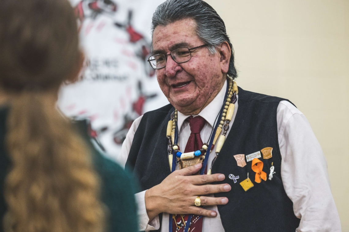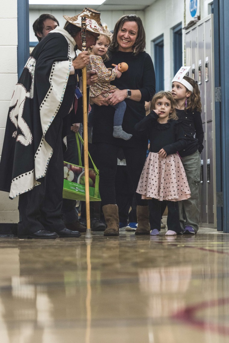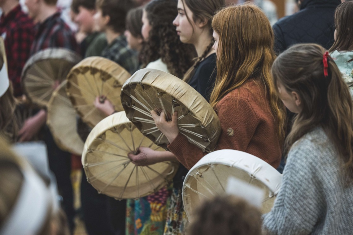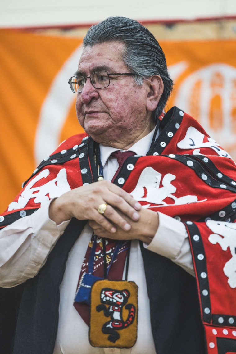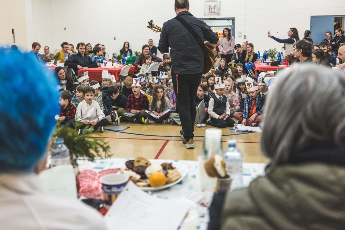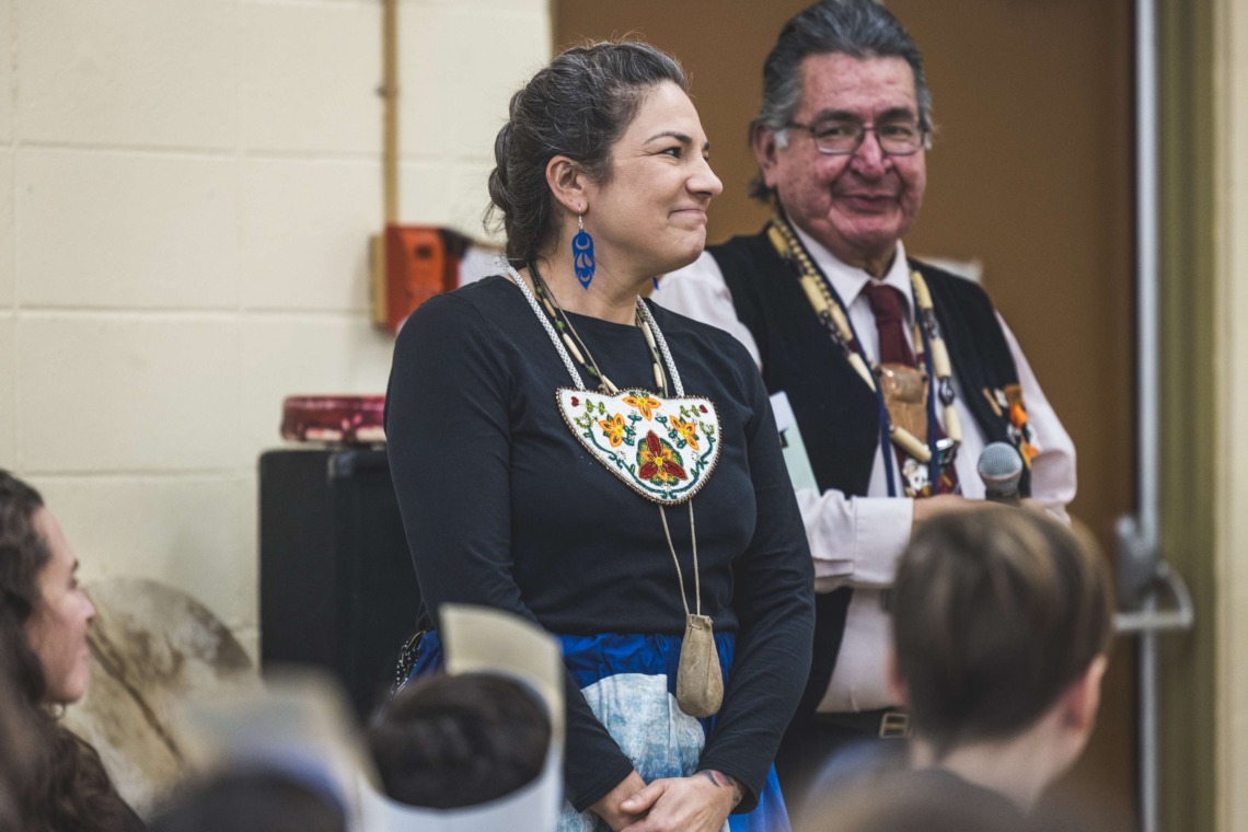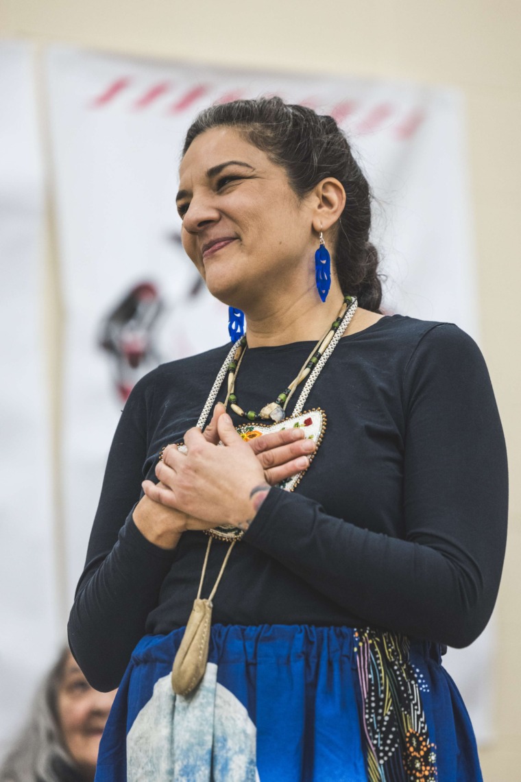 Le 11 décembre dernier, ce fut un grand honneur de recréer les traditions d’un festin et d’une cérémonie de nom d’école selon les enseignements traditionnels tsimshian dans le gymnase de l’école des Cinq-saumons. David Wells nous a généreusement accompagné dans nos apprentissages, partageant son savoir et sa culture avec notre communauté. Sa participation a été possible grâce au soutien de Angela Genaille et de son équipe de Kermode Friendship Society. Carmen Morrison a aussi apporté son soutien aux élèves dans plusieurs étapes de préparation, de la fabrication de projets d’art traditionnels en passant par l’apprentissage de chansons et la pratique de protocoles liés au déroulement d’un festin. Louisa Gray et Mary Genaille nous ont permis d’apprendre à préparer un Nisga’a stew et du pain frit. Cette célébration restera gravée dans nos coeurs comme un moment unique de partage, de connexion et d’amour. T’oyaxsut nüüsm à tous ceux qui ont contribué à cet événement; aux invités d’honneur, aux parents, aux familles, aux cuisinières, aux élèves, aux amis et aux partenaires. Merci aussi à Yan Kaczynski, photographe, pour toutes les magnifiques photos! Nous sommes honorés de dire que l’école des Cinq-saumons est maintenant Xstuunsa Hoon’m Suwilaawksat dans la langue Sm’Algyax!
